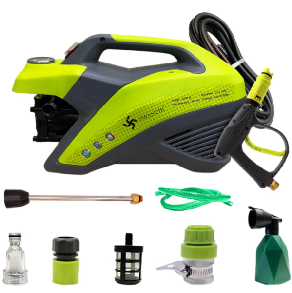 The SWASTIK Pro220 High Pressure Washer is a powerful and efficient cleaning solution designed for cars, bikes, and home use. Equipped with a high-performance 2200W motor and delivering up to 150 bar pressure, this machine ensures deep cleaning of stubborn dirt, mud, and grime with ease.